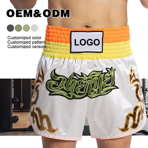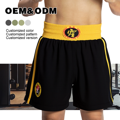 Muyi, diseño personalizado, pantalones cortos MMA de secado rápido para hombres, pantalones cortos tailandeses informales de cintura media con interior de malla para entrenamiento, servicio OEM