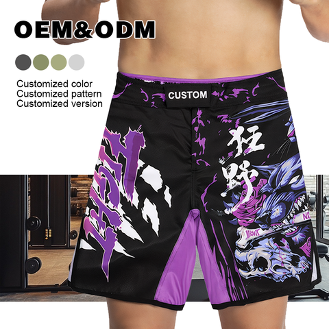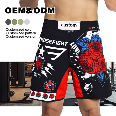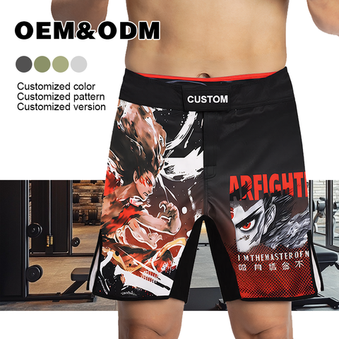 Bermudas de cintura media con diseño personalizado, tejido de poliéster con impresión digital elástica para entrenamiento de MMA, ropa informal, OEM disponible