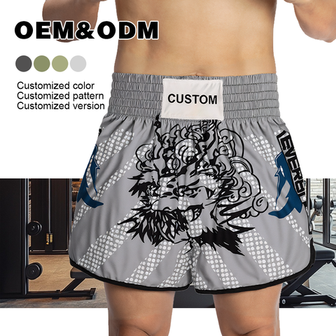 Pantalones cortos de cintura elástica para hombre, entrenamiento de MMA y Muay Thai, ropa de lucha de gimnasio de poliéster con patrón de Bermudas