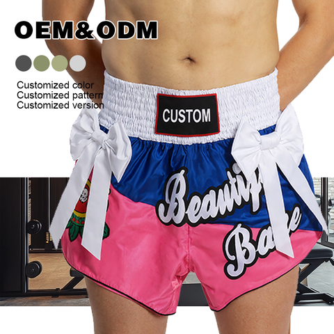 Pantalones cortos MMA de secado rápido para hombre de diseño personalizado Muay, pantalones cortos tailandeses informales de cintura media con interior de malla de poliéster para entrenamiento, servicio OEM